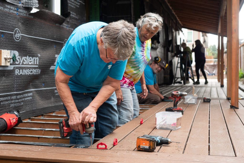 As for the deck itself, members of the Habitat Store and our office staff helped frame it for a special staff build day, and the decking was installed almost entirely by a Women Build group led by a team of Care-A-Vanners in just one day.